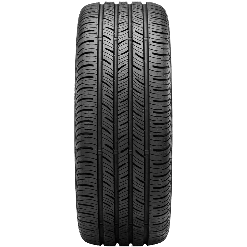- Symmetric, notched-rib tread design blends low noise and traction.